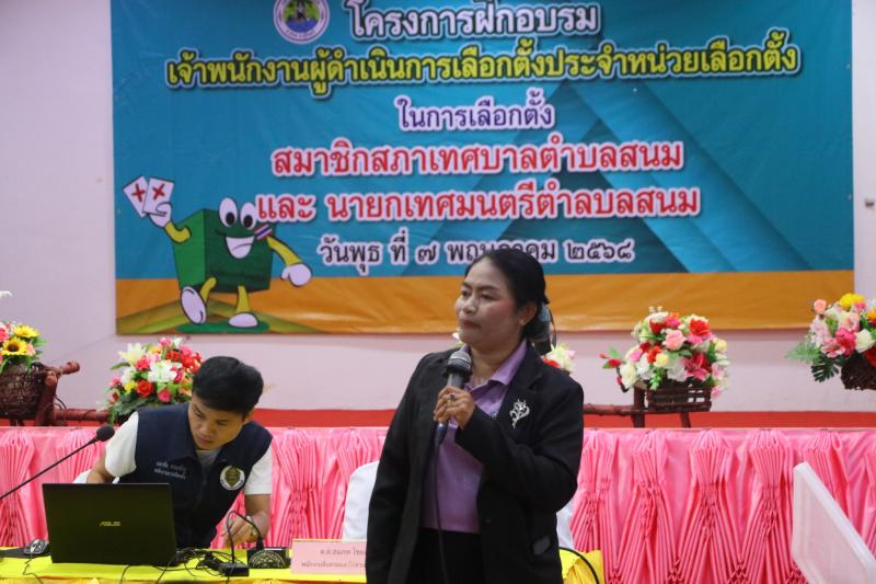 เมื่อวันพุธที่ ๗ พฤษภาคม ๒๕๖๘ เทศบาลตำบลสนมดำเนินโครงการฝึกอบรม เจ้าพนักงานผู้ดำเนินการเลือกตั้งประจำหน่วยเลือกตั้ง ในการเลือกตั้ง สมาชิกสภาเทศบาลตำบลสนม และ นายกเทศมนตรีตำบลสนม โดยมีวัตถุประสงค์เพื่อให้ผู้เข้ารับการอบรมซึ่งปฏิบัติหน้าที่เจ้าพนักงานผู้ดำเนินการเลือกตั้งประจำหน่วยเลือกตั้งมีความรู้ ความเข้าใจ ในบทบาท ภารกิจหน้าที่ที่ได้รับมอบหมายและสามารถปฏิบัติงานได้ถูกต้อง ตามกฎหมายและระเบียบที่กำหนด