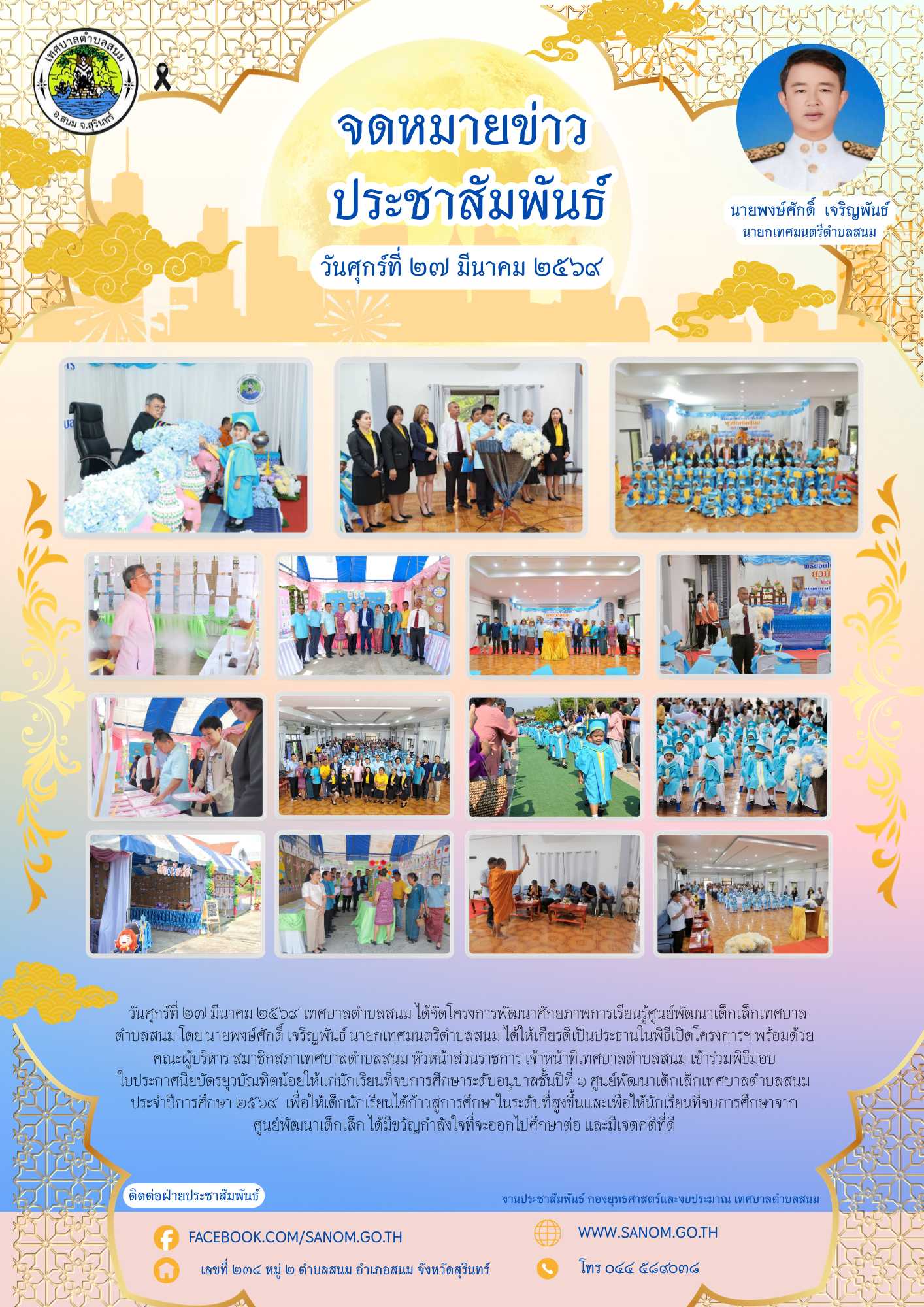 เว็บไซต์ของเทศบาลตำบลสนม มีการจัดเก็บคุกกี้ เพื่อพัฒนาประสบการณ์ของผู้ใช้ให้ดียิ่งขึ้น กรุณาอ่าน นโยบายการคุ้มครองข้อมูลส่วนบุคคล (Privacy Policy)