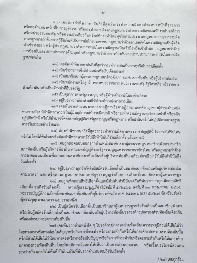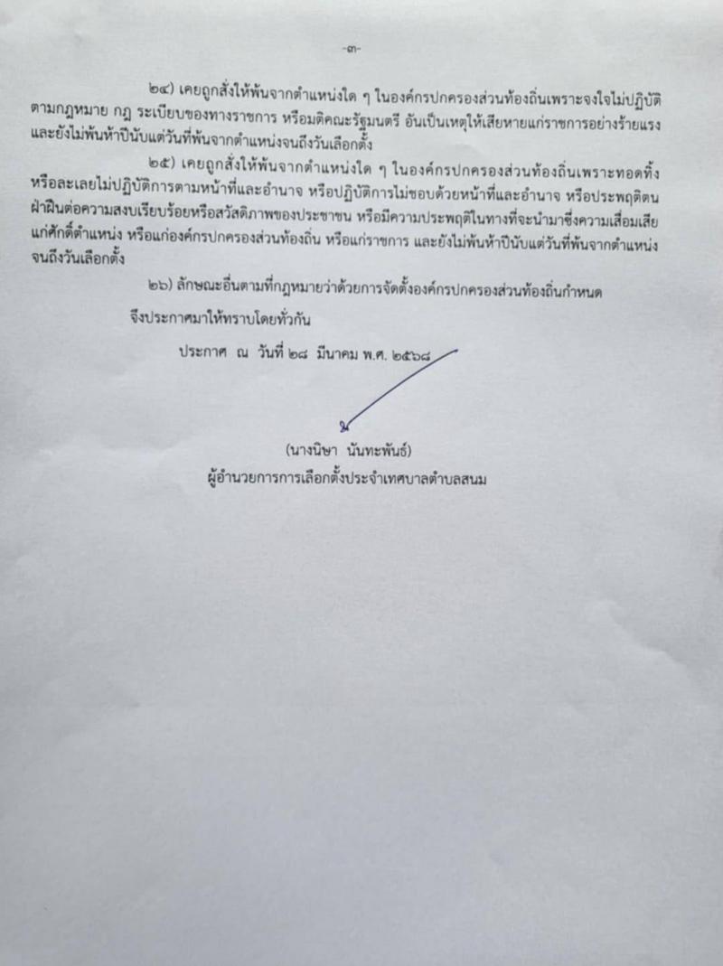 ประกาศคุณสมบัติและลักษณะต้องห้ามของผู้สมัครรับเลือกตั้งสมาชิกสภาเทศบาล