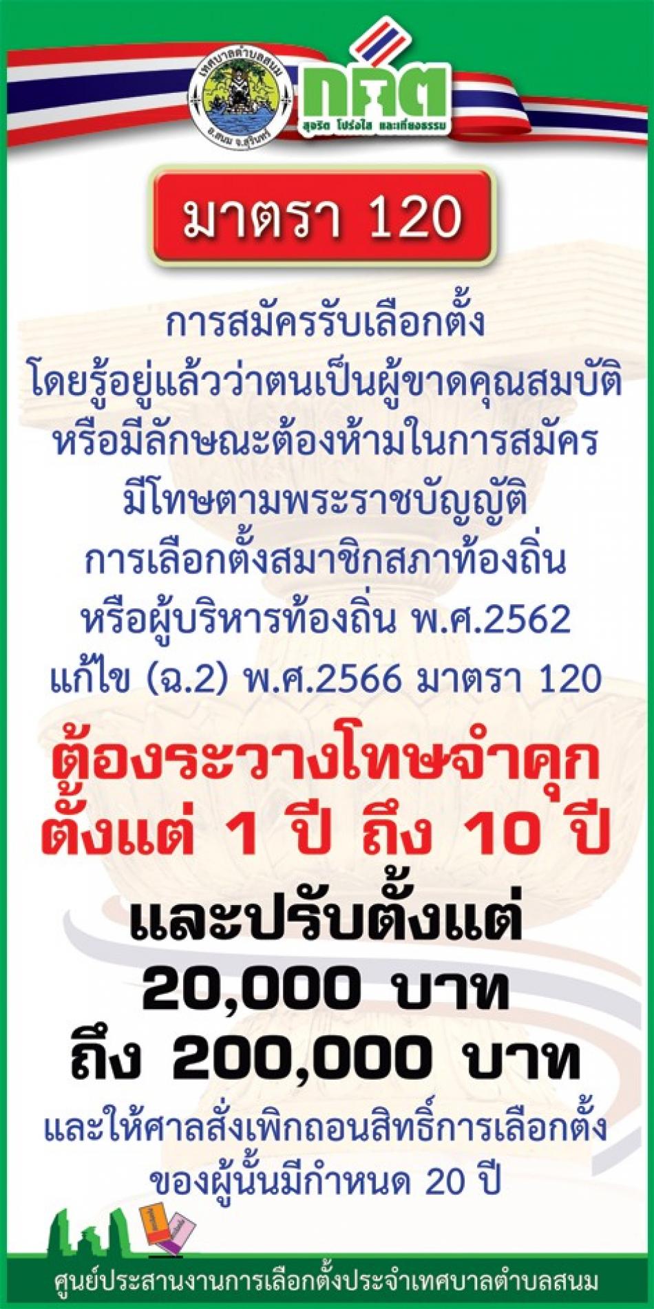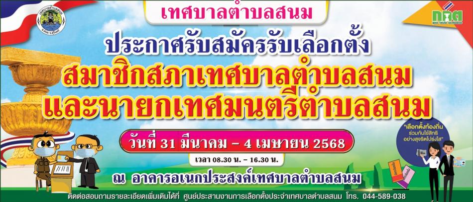 ประชาสัมพันธ์การเลือกตั้งสมาชิกสภาเทศบาลและนายกเทศมนตรีตำบลสนม [29 มีนาคม 2568]