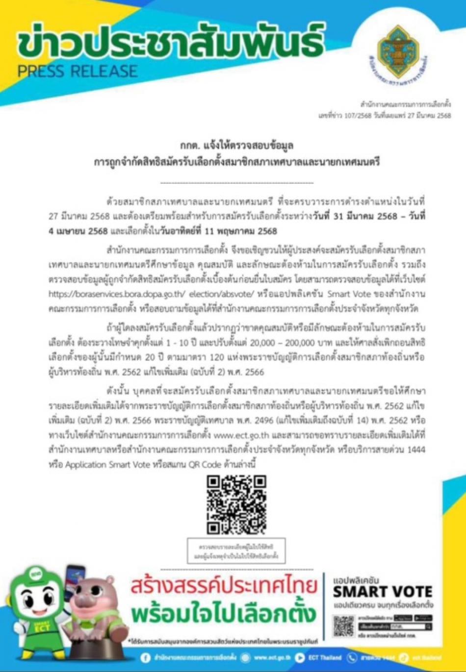 กกต. แจ้งให้ตรวจสอบข้อมูล [30 มีนาคม 2568]