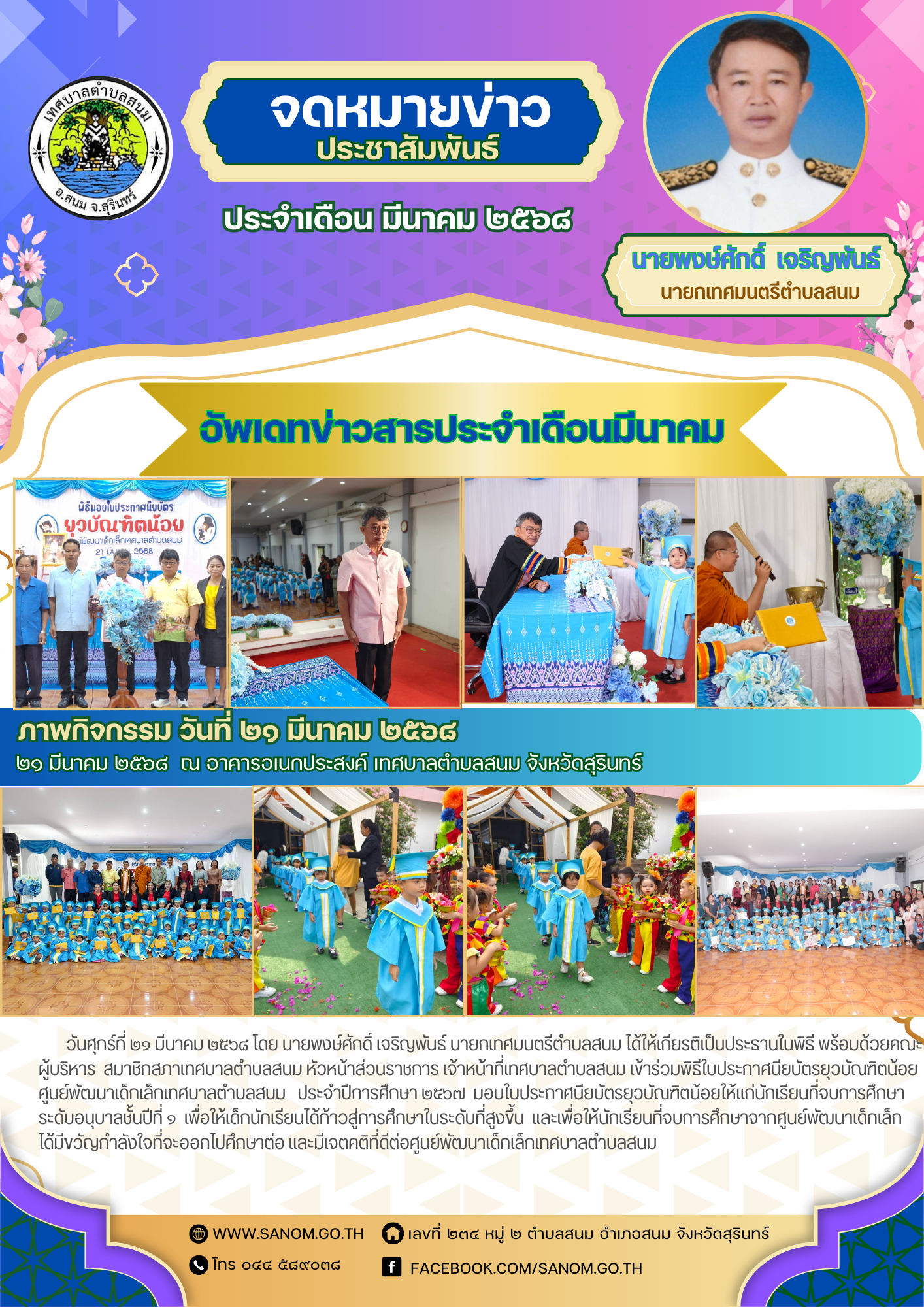 พิธีใบประกาศนียบัตรยุวบัณฑิตน้อย ศูนย์พัฒนาเด็กเล็กเทศบาลตำบลสนม [21 มีนาคม 2568]