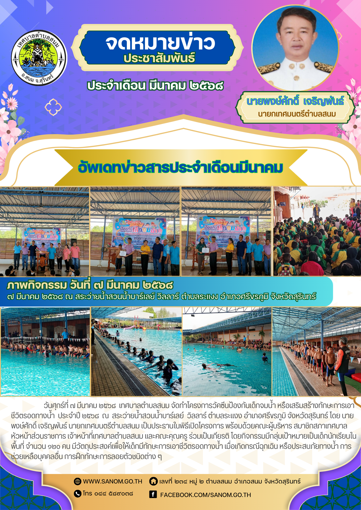 วัคซีนป้องกันเด็กจมน้ำ หรือเสริมสรางทักษะการเอาชีวิตรอดทางน้ำ ประจำปี ๒๕๖๘ [7 มีนาคม 2568]